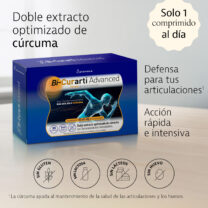 Complemento alimenticio único en base a un doble extracto optimizado de cúrcuma: combina la fracción hidrosoluble, rica en turmerosacáridos, con el Complejo de Cúrcuma Curarti®, consiguiendo un aporte doble de la cúrcuma.