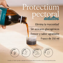 Protectium Pectoral Adultos es un jarabe que ayuda a eliminar la mucosidad gracias al tomillo y saúco, y reforzado con bálsamo de tolú, altea, tomillo, equinácea, erísimo, llantén, saúco y mentol, empleados tradicionalmente para el bienestar respiratorio.