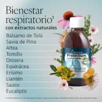• EQUINÀCIA, SAUC I ALTRES: També conté equinàcia, saüc, vitamina C i coure, que ajuden a mantenir les defenses. A més, la fórmula de Protectium Pectoral adults inclou saba de pi, drosera, eucaliptus i carvona.