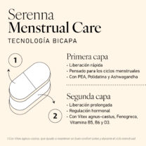 Primera capa: Liberación rápida, pensado para los ciclos menstruales. Con PEA, Polidatina y Ashwagandha.
