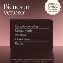 • VITAMINA C Y VID ROJA: Ayuda a tu bienestar venoso. La Vitamina C contribuye a la formación normal de colágeno para el funcionamiento normal de los vasos sanguíneos.